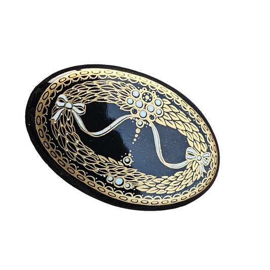 Vintage Michaela Frey Enamel Brooch Black Gold Antique Deco Style 80s Retro