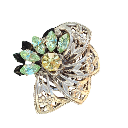 Silver French Brevet Brooch Antique Crystal Rhinestone Jewellery Green Pin