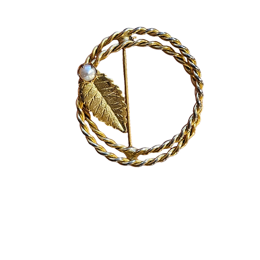 Pearl Gold Leaf Brooch Stylish Pin Wreath Vintage Minimalist Jewellery Jewelry