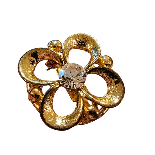 Beautiful Quatrefoil Crystal Brooch Pin Gold Vintage Jewellery