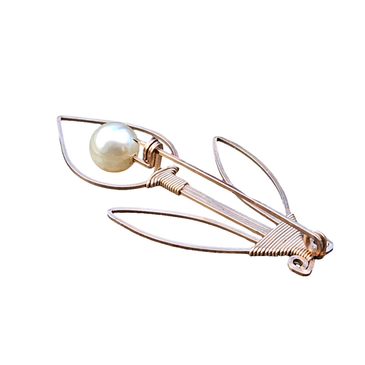 Rose Gold Wire And Pearl Brooch Stylised Flower Vintage Gift