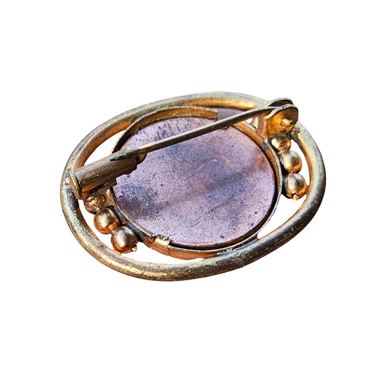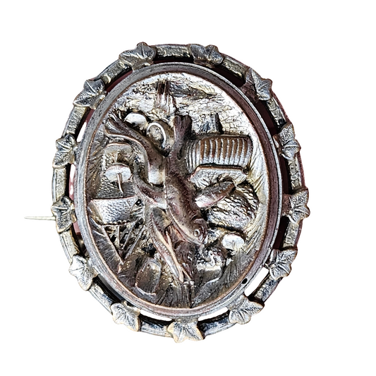 Antique Fish Brooch Copper Hunting Fishing Scene Pin Old Jewellery Jewelry