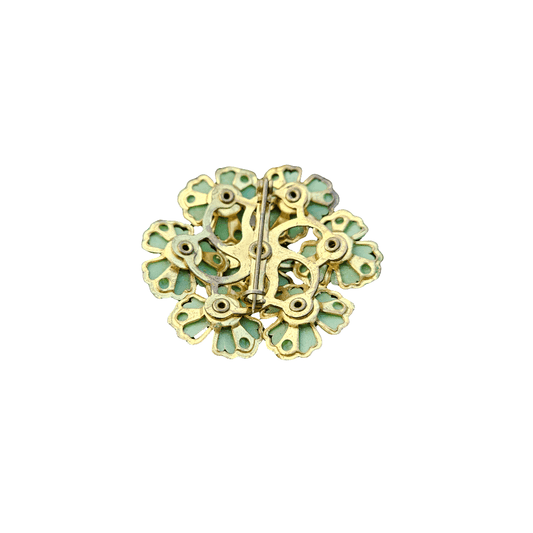 Antique Brooch Pastel Flowers Emerald Green Rhinestone Vintage Pin Jewellery Brass