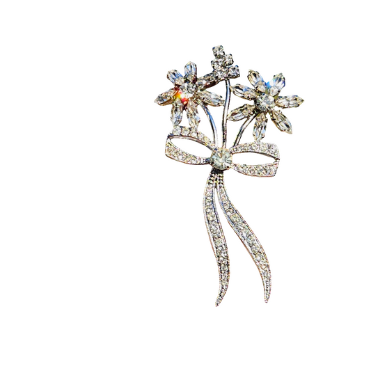 Diamante Brooch Flower Bouquet Pin Rhinestone Vintage Jewellery Sparkly