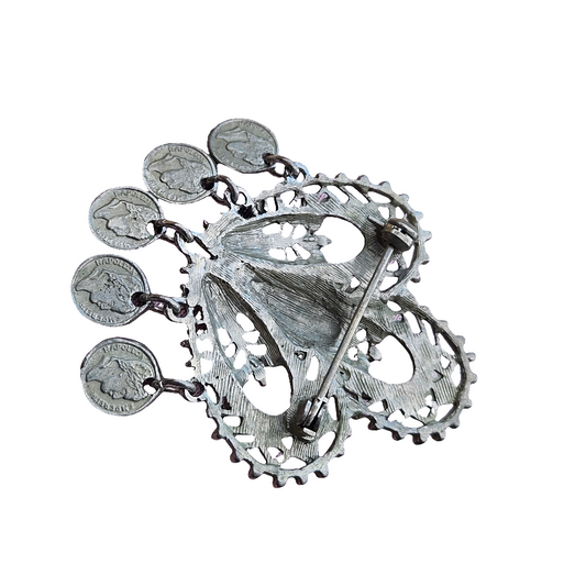 Regal Silver Crown Brooch Pin Vintage Jewellery French Coins