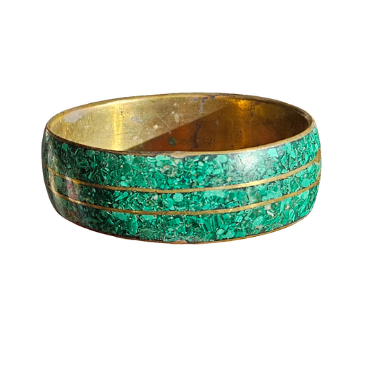 Amazing Malachite Bangle Brass Inlay Vintage Bracelet Green Golden Jewellery
