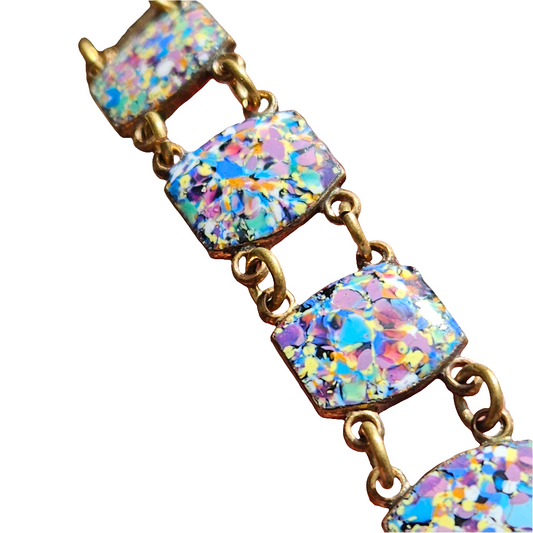 Vintage Hard Enamel Panel Link Bracelet Bright Colourful Jewellery