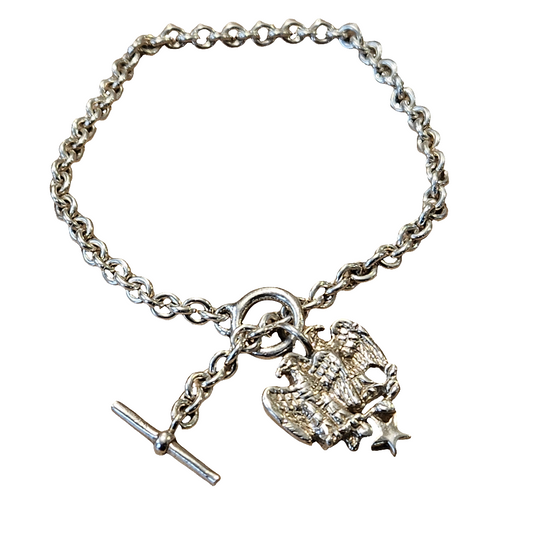 Sterling Silver Toggle Bracelet Eagles Star 925 Masonic Jewellery