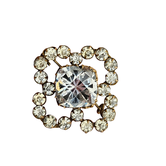 Antique Quatrefoil Brooch Large Cut Glass Crystal Gilt Pin Jewellery