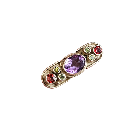 Sterling Silver Radiant Garden Gemstone Brooch Peridot Garnet Amethyst Pin