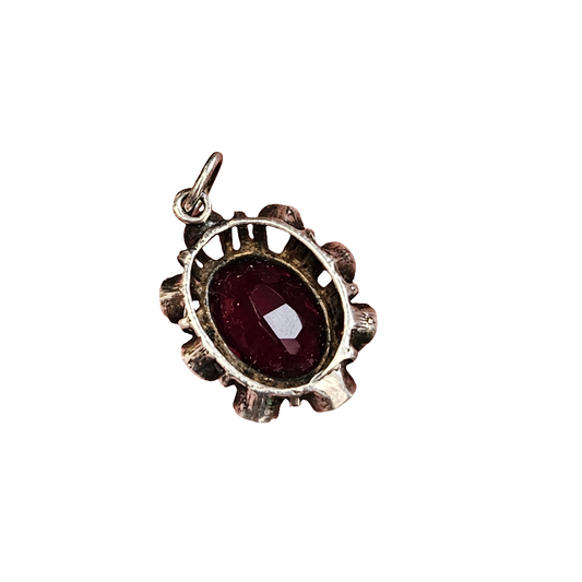 Sterling Silver Horse Shoe Style Gemstone Pendant Deep Red Stone