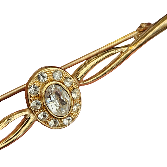 Vintage Gold Plated Crystal Bar Brooch Pin Stylish Jewellery Jewelry