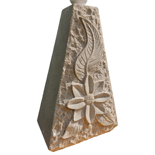 Handmade Stone Lamp Base Floral Hand Carved Triangle Mid Century Vintage
