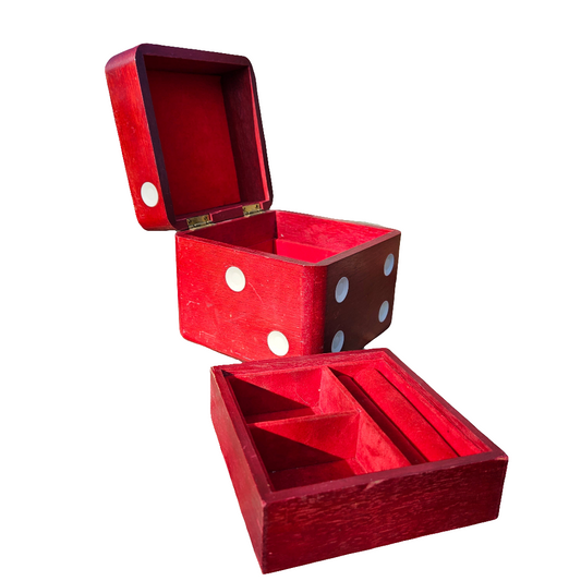 Vintage Jewelry Box Giant Dice Die Red White Inlay Jewellery Trinket Box Wooden