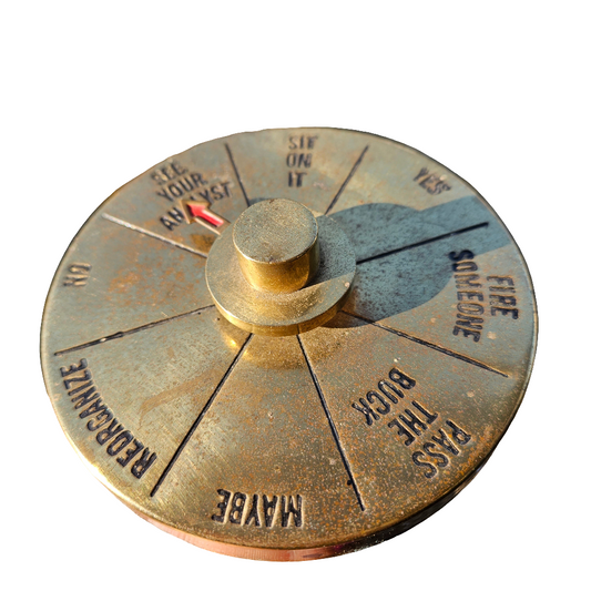 Decision Maker Brass Spinner Wheel Paperweight Executive Table Gift Vintage Office Decor
