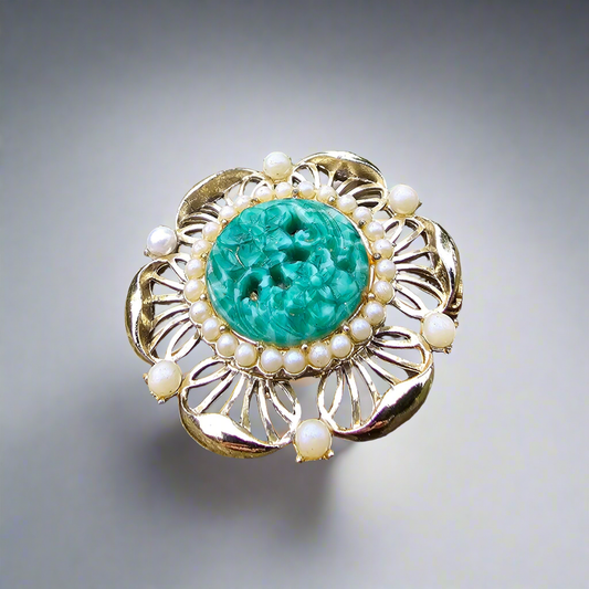 Peking Glass Pearl Brooch Gold Tone Vintage Jewellery Exquisite