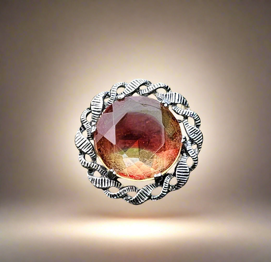 Celtic Style Vintage Glass Cabouchon Silver Tone Brooch