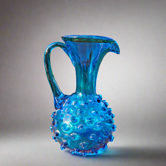 Aqua Blue Hobnail Glass Jug Vase Vintage Vibrant Mid Century Decor