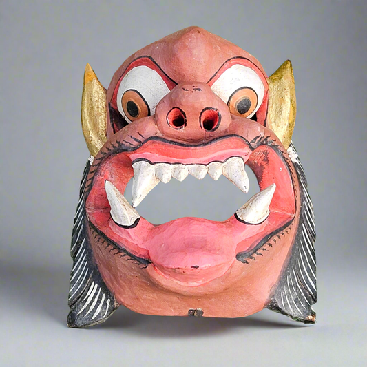 Old Balinese Demon Mask Carved Wood Red Devil Wall Art Handmade