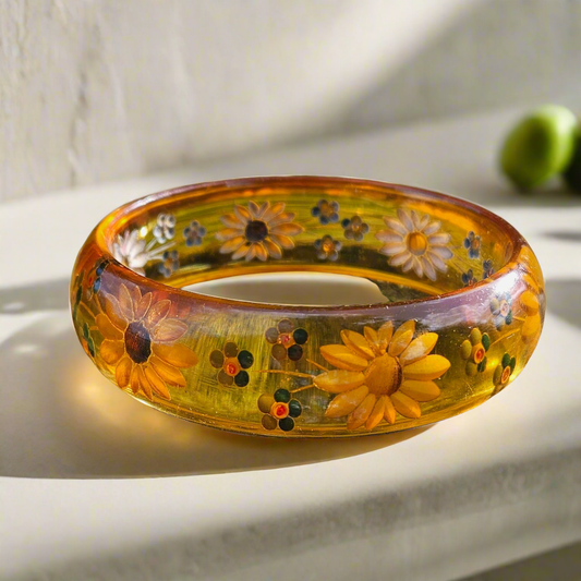 Reverse Carved Bakelite Bangle Vintage Jewellery Bracelet Flowers Antique Jewelry