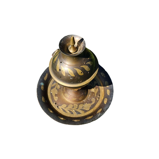 Old Brass Incense Stick Cone Burner Tripod Etched Design Indian Vintage