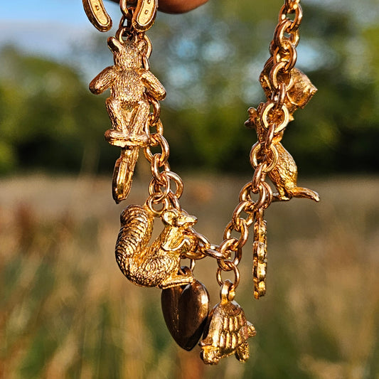 Cute Antique Copper Charm Bracelet 19cm Vintage Jewellery