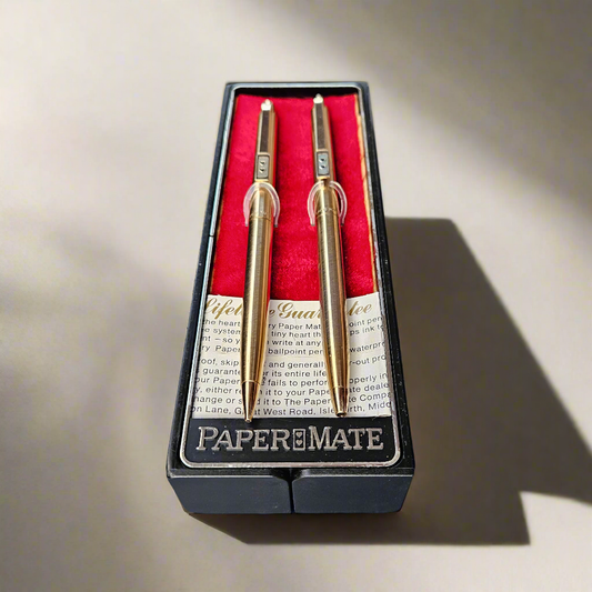 RARE Set Vintage Papermate Twin Hearts Gold Ball Point Pen Pencil
