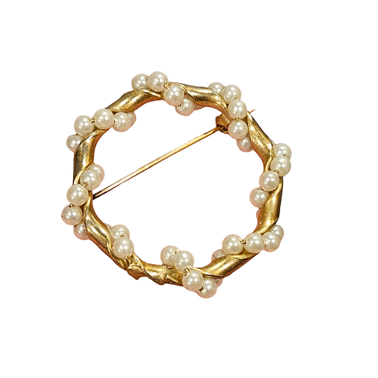 Stylish Golden Pearl Brooch Pearl Circle Woven Bridal Pin Jewellery
