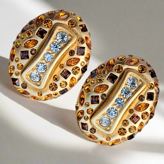 Swarovski Clip On Earrings Jewellers Collection Statement Matt Gold