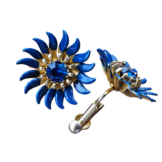 Jewelcraft Flower Earrings Clip Screw On Blue Gold Vintage