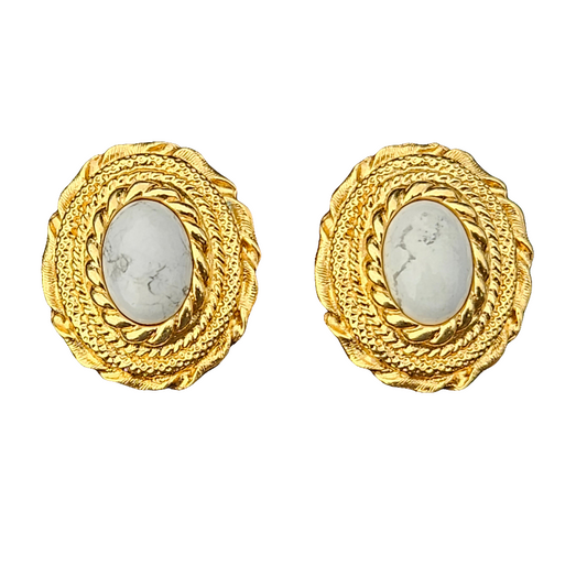 Givenchy Earrings Pierced Gold Marble Stone Cabochon 80s Studs Stylish Jewellery