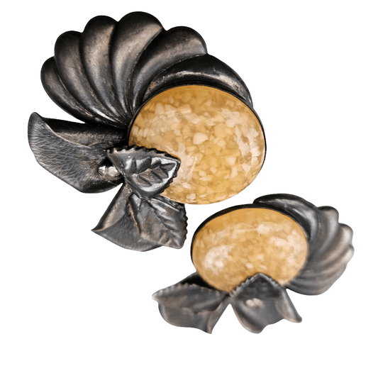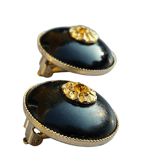Antique Clip On Earrings Citrine Gold Black Dome Vintage Jewellery Jewelry