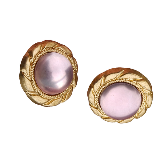 Dusky Pink Gold Plastic Clip On Earrings Lightweight Glam Stylish Jewellery Jewelry 80s