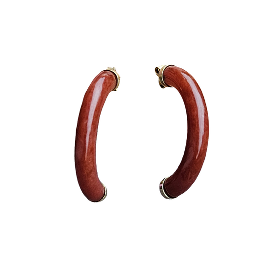 Large Vintage Coral 925 Gold Plated Earrings Red Jewellery