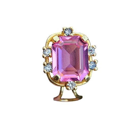 Quality Pink Gem Crystals High Fashion Earrings Gold Clip On Vintage Jewellery Sparkly