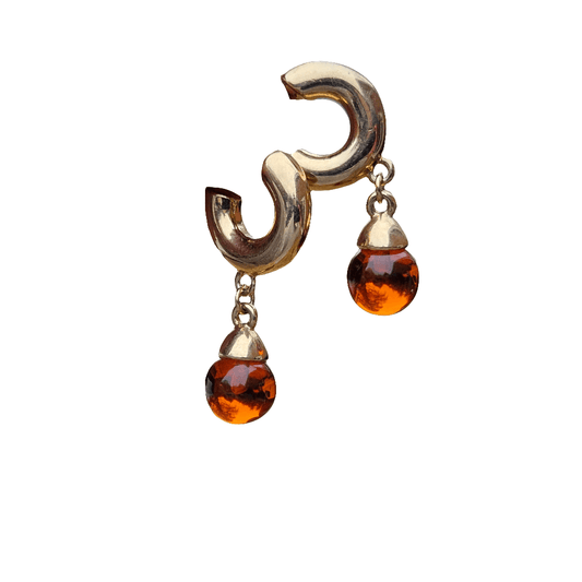 Vintage Earrings Amber Glass Drop 80s Huggie Hoop Gold Studs 90s Jewellery
