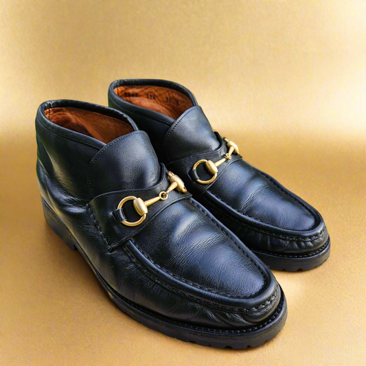 Genuine Gucci Ankle Boots Horsebit Vintage Shoes Black Leather Size 39