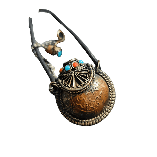 Copper Snuff Bottle Necklace Turquoise And Red Stones Vintage Ethnic Jewellery