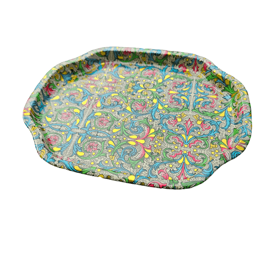 Bright Tin Tray Stunning Lithograph Pattern Vintage Kitsch Metal Tray