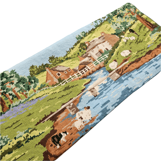 Large Vintage Needlepoint Cushion Cover Country Scene Tapestry Pillow Slip