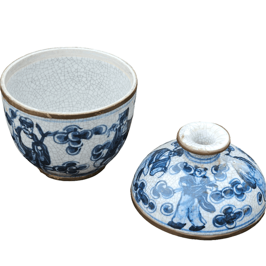 Chinese Blue And White Porcelain Vase Shape Jar Brass Old Trinket Urn