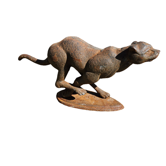 Cast Iron Cheetah Figurine Ornament Large Vintage Animal