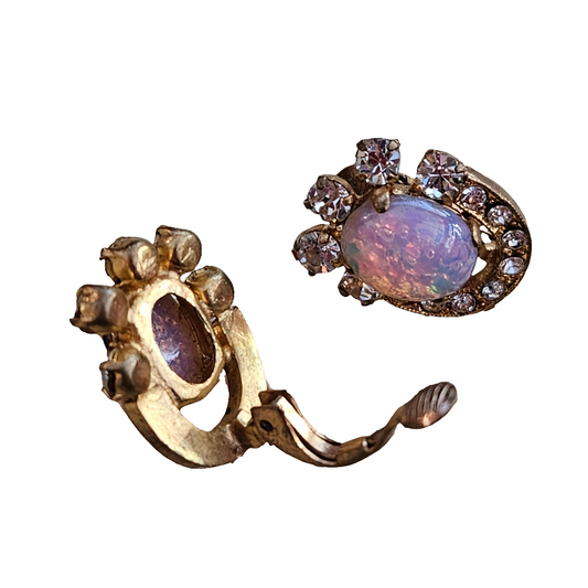Stunning Clip On Earrings Faux Opal Diamante Gold Plate Dragons Breath