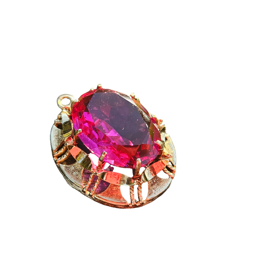Bright Neon Pink Gemstone Pendant 80s Glam Gold Tone Jewellery Charm