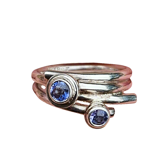 18k White Gold Ring Size J Tanzanite Sapphire Stunning Modernist