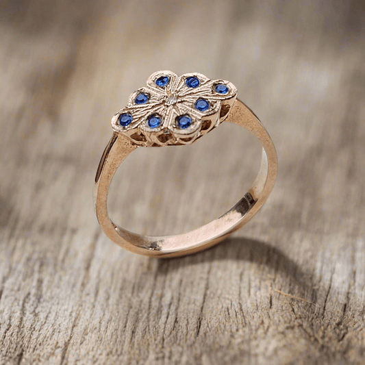 Art Deco Style 375 Rose Gold Ring Size UK N & Half Vintage Jewellery