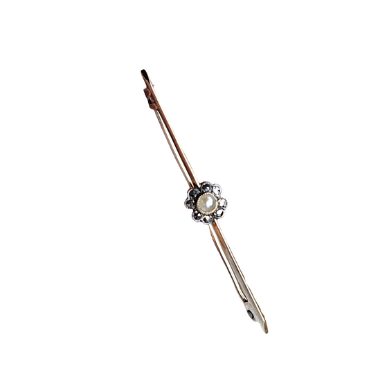 9ct Gold Pearl Bar Brooch Marcasite Pretty Vintage Pin