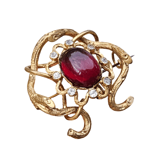 Antique French Ruby Red Cabochon Gold Gilt Brooch Pin Large Crystals Jewellery