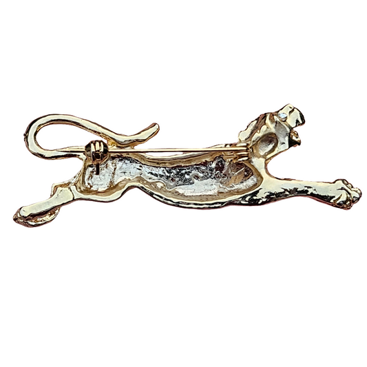 Glam 80s Leopard Brooch Gold Rhinestone Costume Jewellery Jewelry