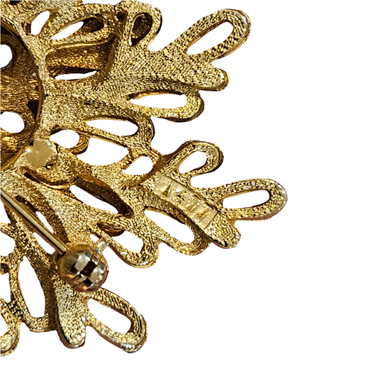 Gold Brutalist Sphinx Brooch No 1477 Vintage Pin 80s Large Glam Jewelry